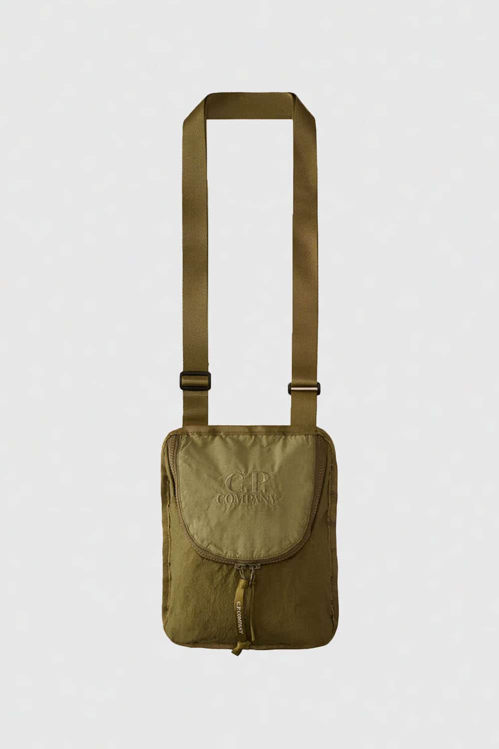 Shoulder bag crafted in Plain Paper Touch, a lightweight nylon canvas. The bag includes adjustable straps and a two-way front zip pocket with embroidered logo detail. Complete with an inner mesh pocket. Garment dyed and anti-drop treated.